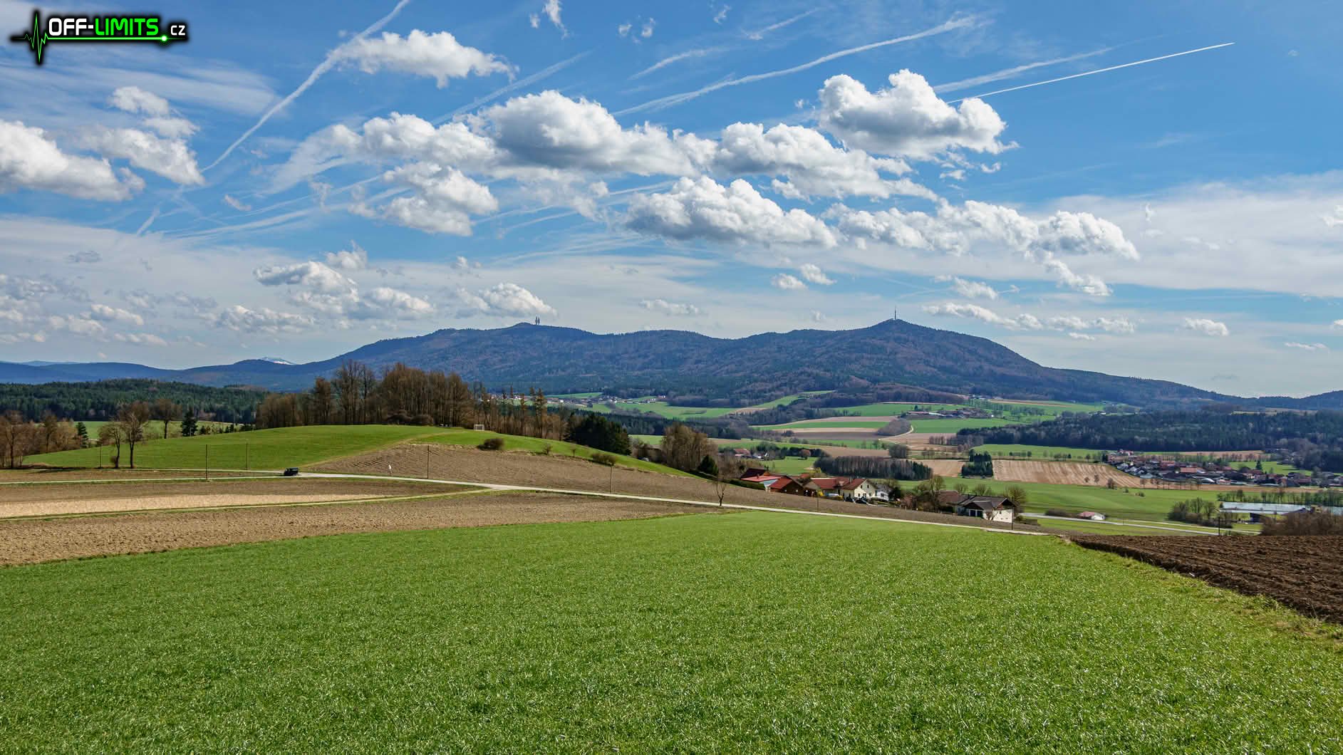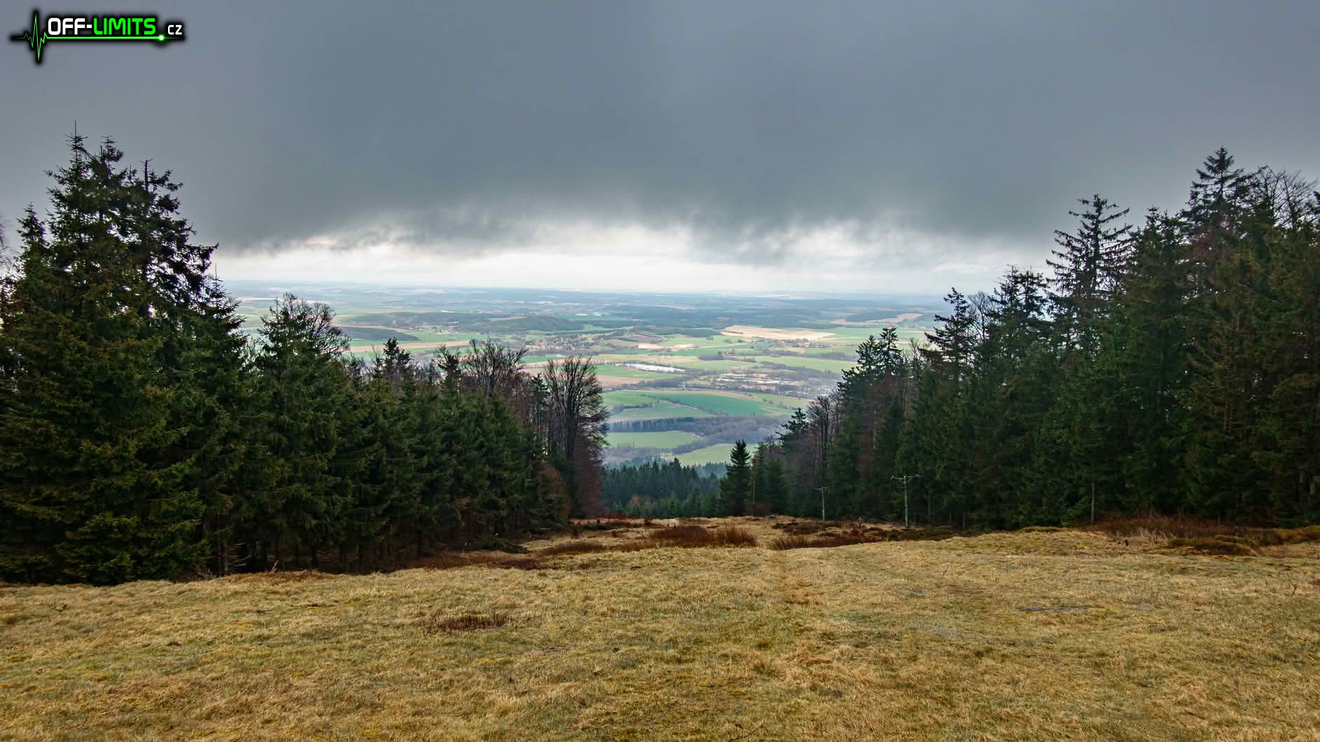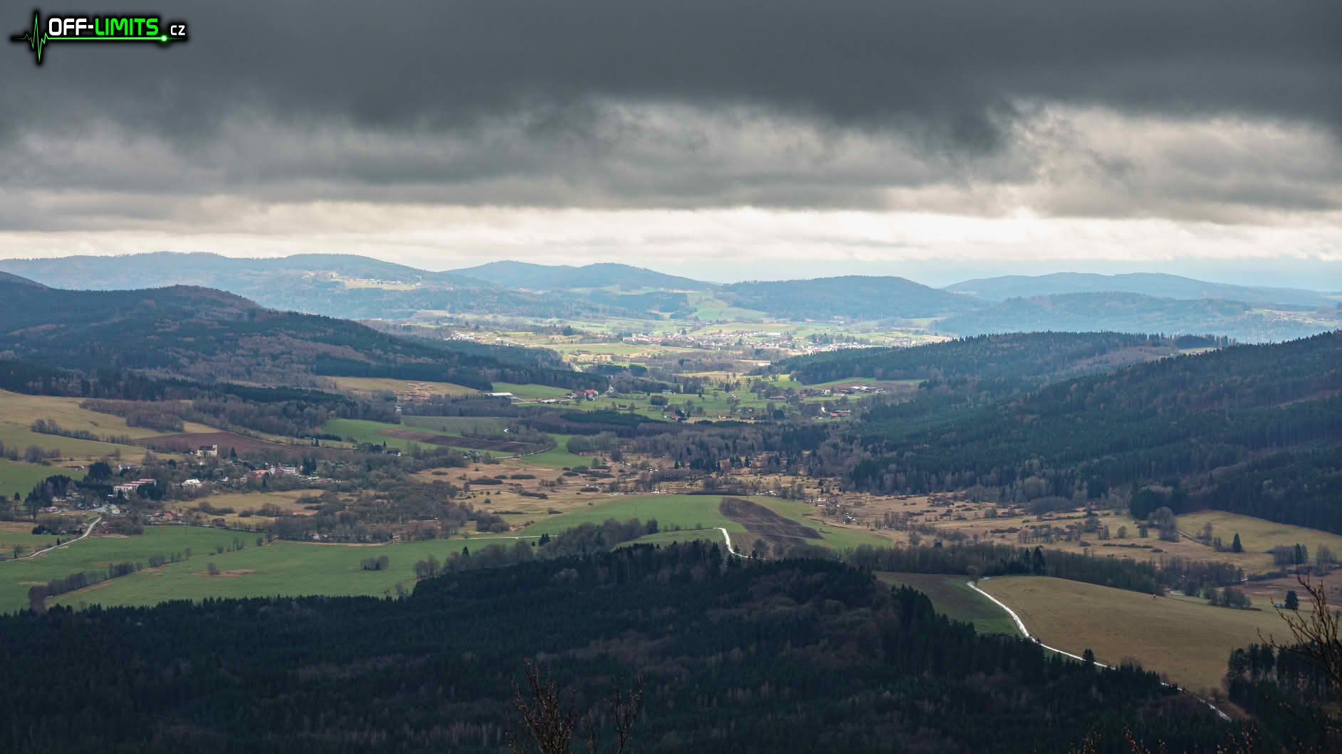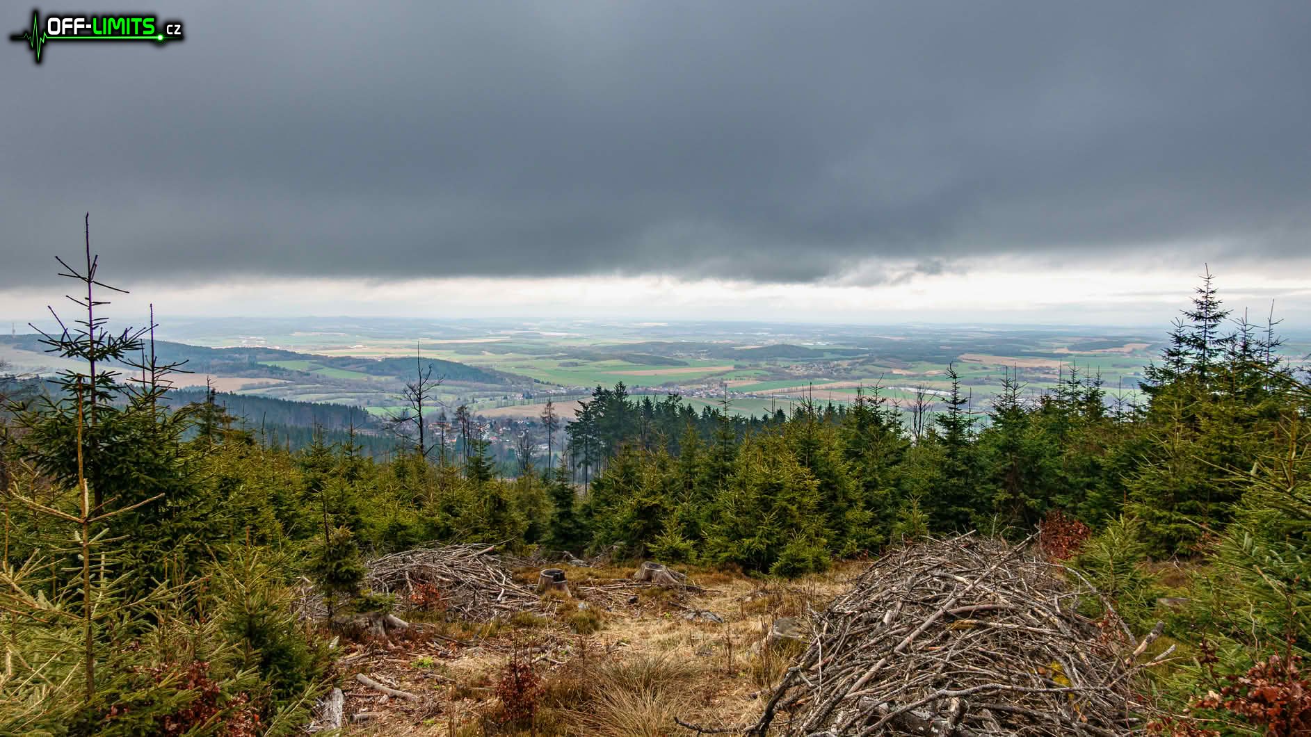 Asi v polovině výstupu jsem proběhl obcí Herzogau, kde už začaly první výhledy po krajině. Po dalších pár kilometrech jsem odbočil na hřeben a vystoupal tak na vrchol kopce Klammerfels (848), kde stojí stará, dřevěná rozhledna. Výhledy z ní sice byly všemi směry, ale bohužel už těsně přes vrcholky okolních stromů. Po návratu na hlavní cestu jsem se potkal s rodiči, protože zapomněli odbočit na rozhlednu a cestu si tak výrazně zkrátili. Následoval výstup po malé sjezdovce Althütte k horské chatě Gibacht. Další úsek jsem kličkoval kolem hlavní turistické cesty, protože okolo ní je roztroušeno několik skalních vyhlídek. První se nacházela na vrcholu kopce Tannenriegel (910) a výhled z ní byl na jih do údolí a na vzdálené kopce. Druhá byla kousek pod vrcholem kopce Reiseck (902) a výhled byl orientován na údolní město Furth im Wald (Brod nad Lesy). Třetí, poslední a nejhezčí vyhlídka byla na vrcholu kopce Gaißriegel (720) s výhledem opět na město Furth im Wald. Tím výhledy skončily, protože už jsem byl téměř na konci hřebenu.