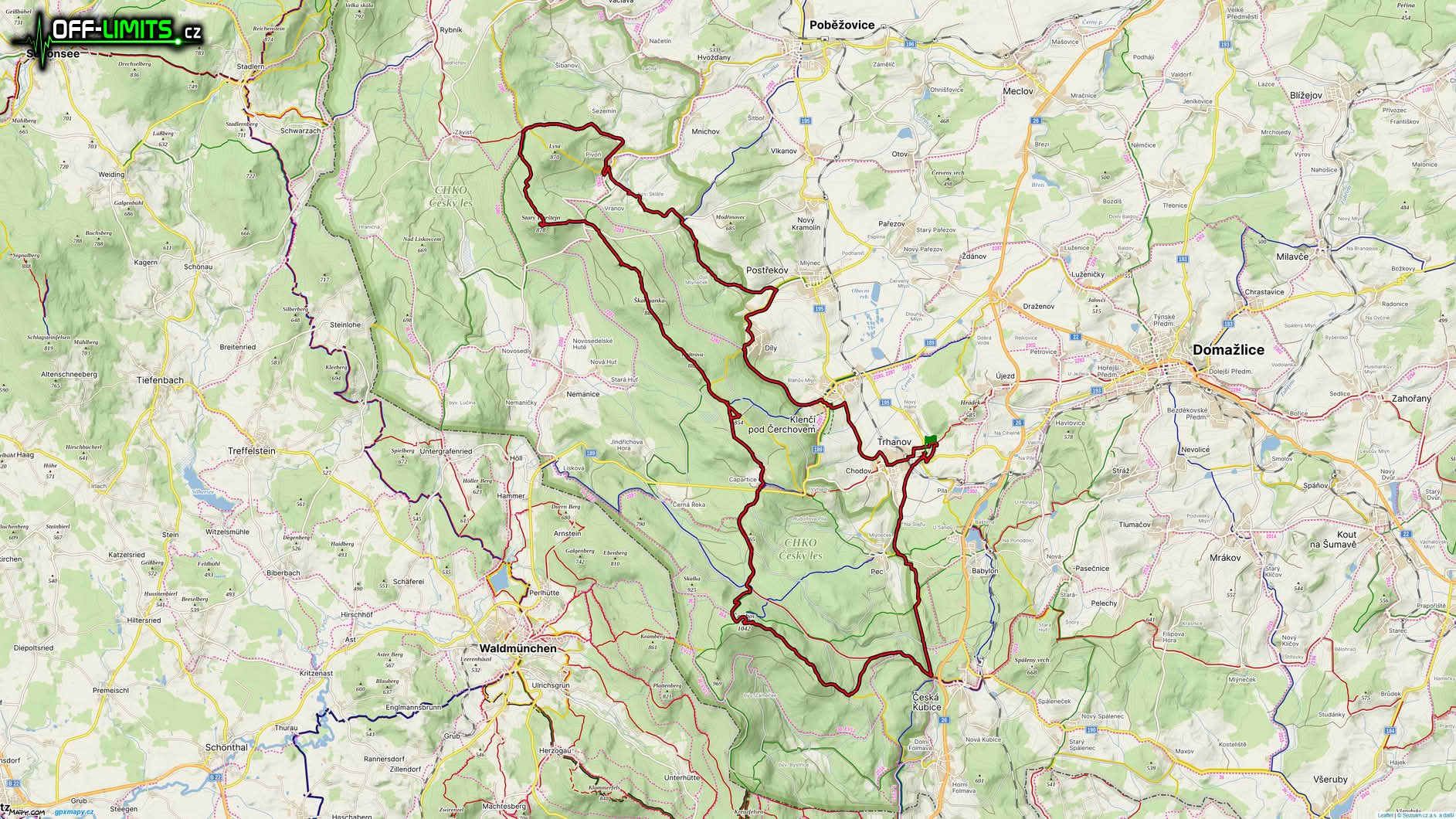 V obci Pivoň jsem odbočil na zelenou značku, která vedla po úpatí celého hřebenu. Bohužel většina cesty byla travnatá, takže jsem měl během chvíle mokré boty, které vydržely suché i předchozí deště. Minul jsem bývalé obce Skláře i Valtířov a kolem Oslího mlýnečku se dostal do obce Postřekov, kde už jsem definitivně odbočil na silnici. Ještě mě čekalo poslední stoupání do obce Díly a pak už jsem sbíhal přes obce Klenčí pod Čerchovem a Chodov zpátky do Trhanova. Vrátil jsem se těsně před večeří s nepříjemně bolavými stehny. Protože mě následující den čekalo běhání po německých kopcích (Oberpfälzer Wald), doufal jsem, že si nohy přes noc dostatečně odpočinou.
