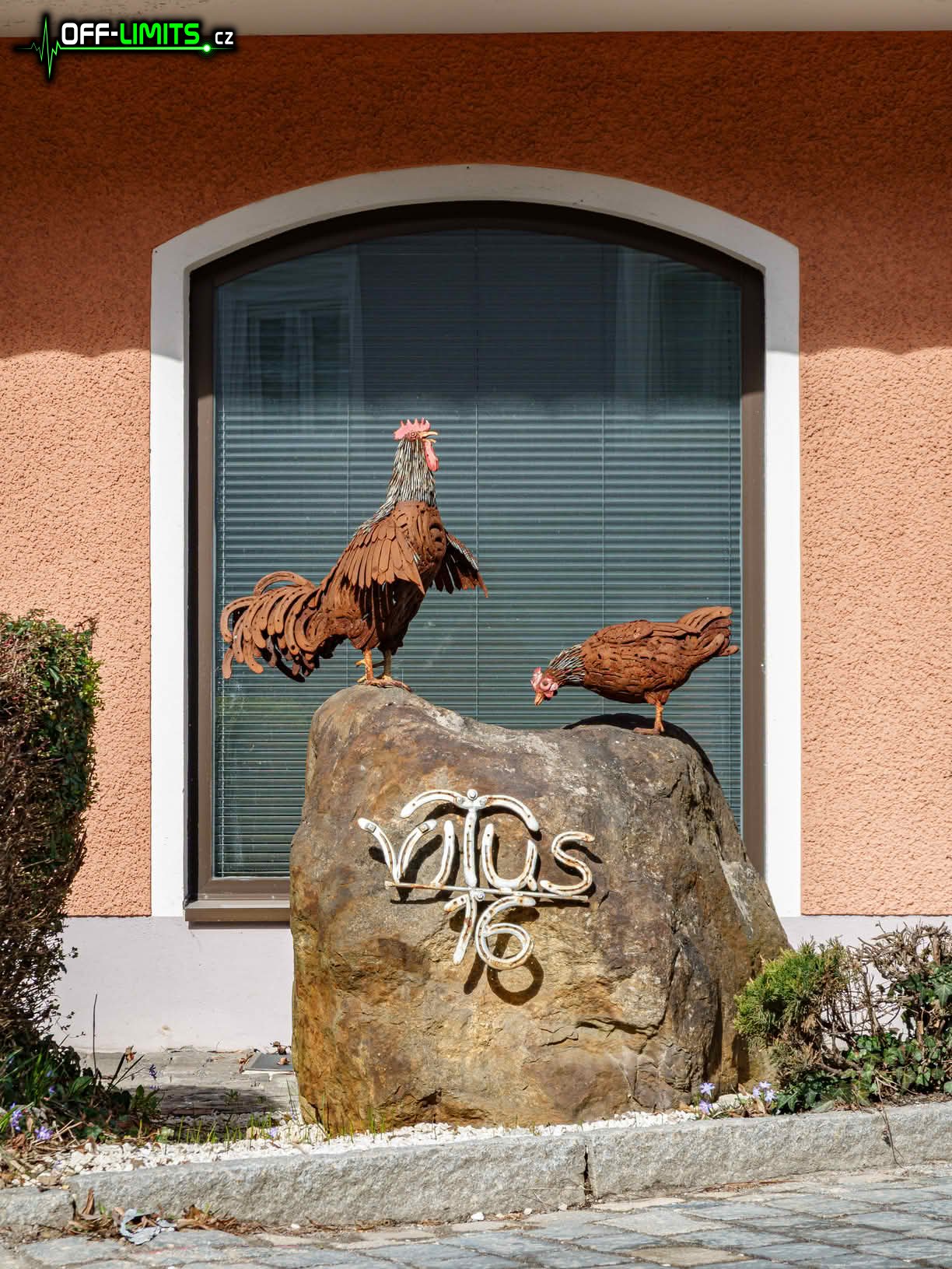 Po zelené značce jsem seběhl dolů do osady Starý Dvůr, kde jsem odbočil na značku červenou. Další úsek byl poměrně rychlý, protože trasa vedla po silnici přes obce Zahořany a Bořice až do města Domažlice. Hned na okraji města u mě zastavilo auto a vyběhl nějaký chlápek, že prý mě zná, sleduje moje běhání, a ještě zmínil Miloše Škorpila. Víc jsem toho bohužel nepostřehl, protože kvůli ostatním autům musel jet dál. Proběhl jsem přes centrum a opět po silnici se dostal do obce Újezd. Poslední úsek už byl terénní, kdy jsem musel vystoupat malý, ale o to více prudkých svah až na vrchol kopce Hrádek (585), kde se kromě pomníku Jana Sladkého Koziny nachází i velká betonová socha chodského psa. Pak už jsem jen po západu slunce seběhl dolů do obce Trhanov a mohl se těšit na další den.