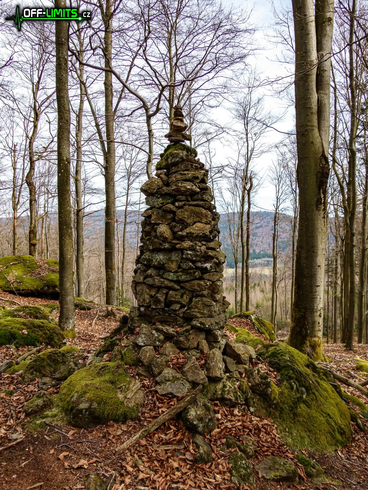 Z vrcholu jsem seběhl po zelené značce o něco níže, kde jsem se připojil na značku červenou. Ta mě vedla následujících asi 20 km stále v mraku s občasným deštěm po hřebenové cestě přes osadu Capartice i vrcholy kopců Sádek (854), Sádkova skála (847), Haltrava (882), Škarmanka (888) a Velká skála (852) až na vrchol kopce Starý Herštejn (878), kde se nachází stejnojmenná zřícenina hradu i rozhledna. Obzvláště zajímavý byl úsek kolem vrcholu Sádek (854), kde bylo strašně moc polámaných stromů kvůli námraze, které tam byly ještě velké hromady právě pod zlámanými stromy. Z rozhledny na zřícenině hradu Herštejn jsem měl překvapivě dobré výhledy, protože se nacházela pod úrovní mraků. Díky tomu jsem mohl vidět v dálce německé město Waldmünchen (Mnichov nad Lesy), kam se mělo jet následující den. Také bylo dobře vidět, jak se dole v lesích tvoří mlha, která se pak díky silnému větru přelévá přes hřeben a mizí v České republice. Po silnici jsem oběhl kopec Lysá (870) a začal se vracet.