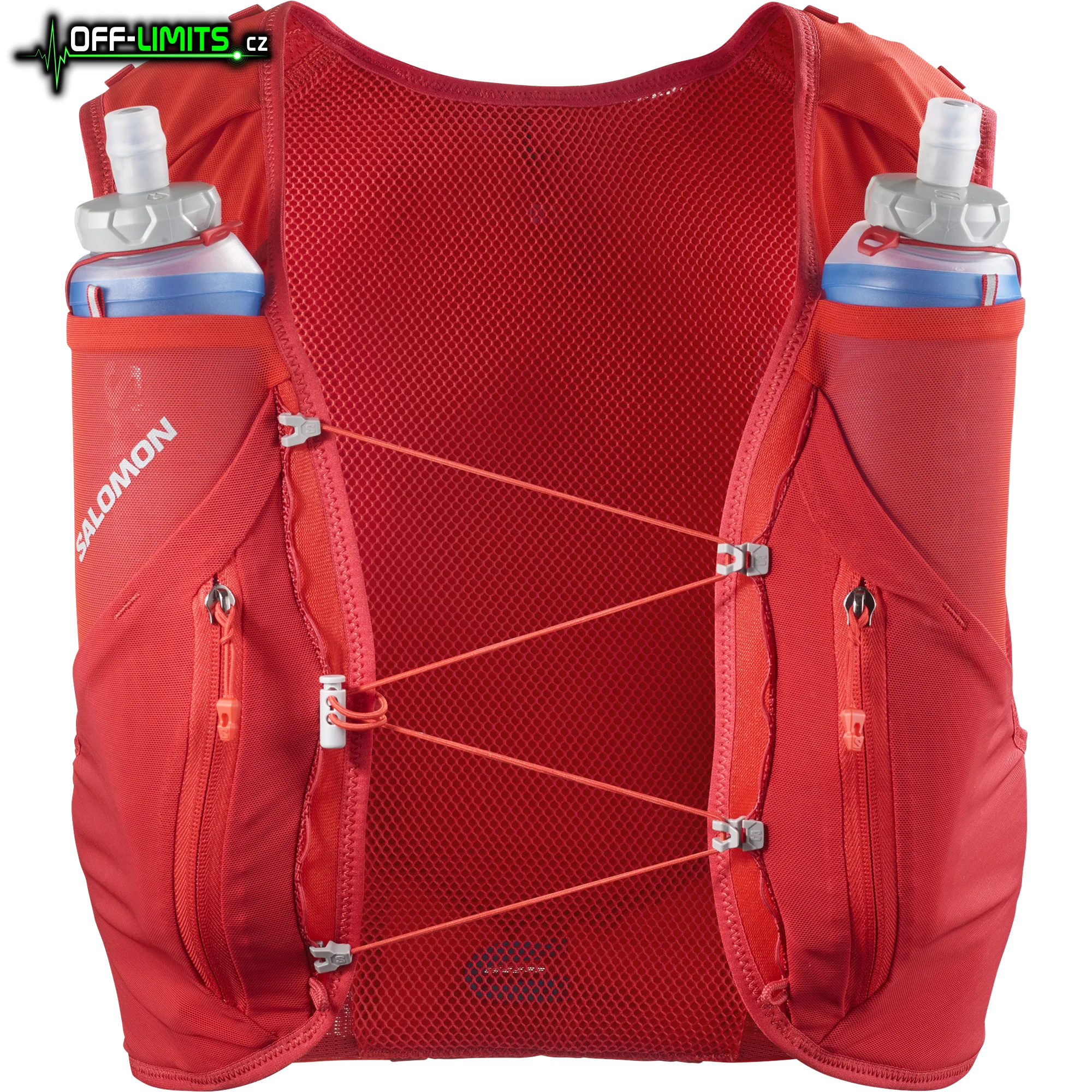 Je dodáván společně se 2 ks lahví Salomon Soft Flask 500 ml. Obsahuje oka a úchyty na turistické nebo běžecké hole, do kterých se hole dají uchytit přímo za běhu. U přední kapsy je připevněná píšťalka pro přivolání pomoci v nouzi.
